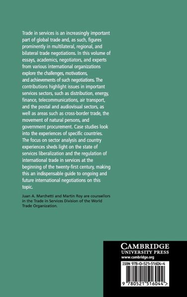 Trade in services is an increasingly important part of global trade and, as such, figures prominently in multilateral, regional and bilateral trade negotiations. In this volume of essays, academics, negotiators and experts from various international organizations explore the achievements of such negotiations, together with the challenges and opportunities which arise and the motivations that come into play in such negotiations. The contributions highlight issues in important services sectors, such as distribution, energy, finance, telecommunications, air transport and the postal and audiovisual sectors, as well as areas such as cross-border trade and government procurement. Case studies look into the experiences of specific countries. The focus on sector analysis and country experiences sheds light on the state of services liberalization and the regulation of international trade in services at the beginning of the twenty-first century, making this an indispensable guide to ongoing and future international negotiations on this topic.
