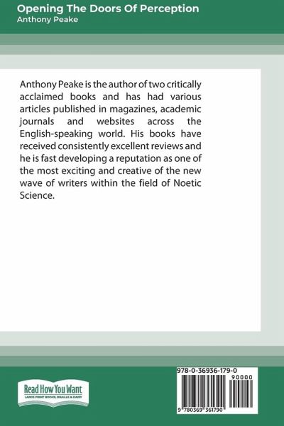 In 1954 Aldous Huxley's hugely influential book 'The Doors of Perception' was published. Huxley's title is taken from William Blake's 1793 book The Marriage of Heaven and Hell. In this Blake makes the following observation: ''''If the doors of perception were cleansed every thing would appear to man as it is, Infinite. For man has closed himself up, till he sees all things thro' narrow chinks of his cavern.'''' Opening the Doors of Perception will update Huxley's work and suggest process and procedures whereby man can, indeed, perceive reality in its true glory. The concept of 'the scale of transcendence' is analysed in great detail, and suggests that there is a scale of perceptions whereby the doors of perception are slowly opened and, bit by bit, they reveal the true nature of 'reality' as suggested by most esoteric teachings and mystic traditions. Most human beings perceive the doors as being securely closed. However there are occasions when the doors become slightly ajar and allow fleeting glimpses of what the Gnostics called 'The Pleroma'. For 'normal' people these glimpses are experienced during fleeting 'noetic' experiences. However for others the doors are prized upon by certain neurological processes starting with migraine and progressing through various 'altered-states' such as temporal lobe epilepsy, bi-polar syndrome, autism and finally, when the doors are fully open, schizophrenia.