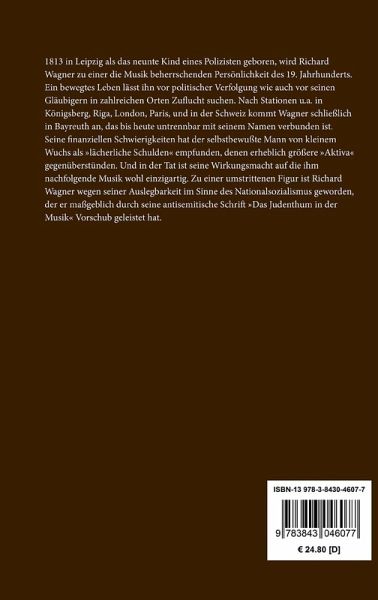 Richard Wagner: Oper und Drama Entstanden zwischen September 1850 bis Februar 1851 im Zürcher Exil . Hier nach: Richard Wagner: Sämtliche Schriften und Dichtungen. Volksausgabe, Bände 3 und 4, Leipzig: Breitkopf und Härtel, o.J. [1911]. Die Eigentümlichkeit der Orthographie wurde bei der vorliegenden Ausgabe beibehalten. Vollständige Neuausgabe. Herausgegeben von Karl-Maria Guth. Berlin 2015. Umschlaggestaltung von Thomas Schultz-Overhage. Gesetzt aus Minion Pro, 11 pt. Über den Autor: 1813 in Leipzig als das neunte Kind eines Polizisten geboren, wird Richard Wagner zu einer die Musik beherrschenden Persönlichkeit des 19. Jahrhunderts. Ein bewegtes Leben lässt ihn vor politischer Verfolgung wie auch vor seinen Gläubigern in zahlreichen Orten Zuflucht suchen. Nach Stationen u.a. in Königsberg, Riga, London, Paris, und in der Schweiz kommt Wagner schließlich in Bayreuth an, das bis heute untrennbar mit seinem Namen verbunden ist. Seine finanziellen Schwierigkeiten hat der selbstbewußte Mann von kleinem Wuchs als »lächerliche Schulden« empfunden, denen erheblich größere »Aktiva« gegenüberstünden. Und in der Tat ist seine Wirkungsmacht auf die ihm nachfolgende Musik wohl einzigartig. Zu einer umstrittenen Figur ist Richard Wagner wegen seiner Auslegbarkeit im Sinne des Nationalsozialismus geworden, der er maßgeblich durch seine antisemitische Schrift »Das Judenthum in der Musik« Vorschub geleistet hat.