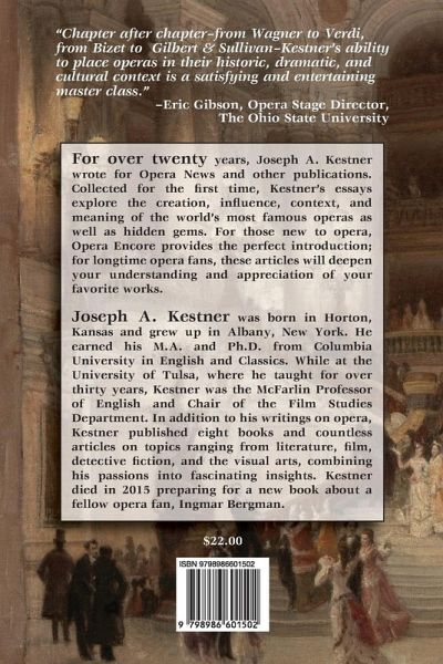 For over twenty years, Joseph A. Kestner wrote for Opera News and other publications. Collected for the first time, Kestner's essays explore the creation, influence, context, and meaning of the world's most famous operas as well as hidden gems. For those new to opera, Opera Encore provides the perfect introduction; for longtime opera fans, these articles will deepen your understanding and appreciation of your favorite works.