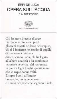 "Per chi scrive storie all'asciutto della prosa - scrive Erri De Luca l'azzardo dei versi è il mare aperto... è che a cinquant'anni un uomo sente di doversi staccare dalla terraferma e andarsene al largo." L'acqua è l'elemento che domina, visivamente e allegoricamente, la prima metà del libro, ponendo le premesse per la più tellurica consistenza della seconda. Un'acqua che si presenta innanzitutto come elemento primordiale.