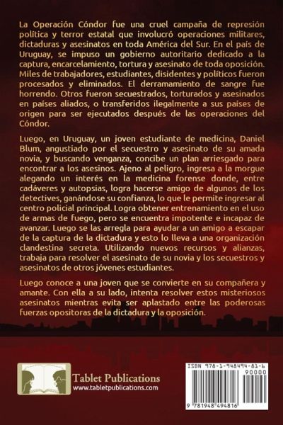 La Operación Cóndor fue una cruel campaña de represión política y terror estatal que involucró operaciones militares, dictaduras y asesinatos en toda América del Sur. En el país de Uruguay, se impuso un gobierno autoritario dedicado a la captura, encarcelamiento, tortura y asesinato de toda oposición. Miles de trabajadores, estudiantes, disidentes y políticos fueron procesados y eliminados. El derramamiento de sangre fue horrendo. Otros fueron secuestrados, torturados y asesinados en países aliados, o transferidos ilegalmente a sus países de origen para ser ejecutados después de las operaciones del Cóndor. Luego, en Uruguay, un joven estudiante de medicina, Daniel Blum, angustiado por el secuestro y asesinato de su amada novia, y buscando venganza, concibe un plan arriesgado para encontrar a los asesinos. Ajeno al peligro, ingresa a la morgue alegando un interés en la medicina forense donde, entre cadáveres y autopsias, logra hacerse amigo de algunos de los detectives, ganándose su confianza, lo que le permite ingresar al centro policial principal. Logra obtener entrenamiento en el uso de armas de fuego, pero se encuentra impotente e incapaz de avanzar. Luego se las arregla para ayudar a un amigo a escapar de la captura de la dictadura y esto lo lleva a una organización clandestina secreta. Utilizando nuevos recursos y alianzas, trabaja para resolver el asesinato de su novia y los secuestros y asesinatos de otros jóvenes estudiantes. Luego conoce a una joven que se convierte en su compañera y amante. Con ella a su lado, intenta resolver estos misteriosos asesinatos mientras evita ser aplastado entre las poderosas fuerzas opositoras de la dictadura y la oposición.
