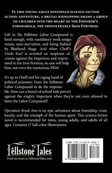 In this young-adult dystopian science-fiction action-adventure, a brutal kidnapping draws a group of children into the heart of the Emperor's stronghold, the impenetrable Iron Fortress. Life in the Fellstone Labor Compound is hard enough, with mandatory work assignments, near-starvation, and being bullied by Blueband thugs. And when Cheff's Uncle Karf is arrested on suspicion of crimes against the Imperium and imprisoned in the Iron Fortress, no one will help him, not even the mysterious FRM. It's up to Cheff and his ragtag band of political prisoners from the Fellstone Labor Compound to do the impossible. How can a bunch of school kids prevail against the mighty Imperium when they're not even allowed to leave the Labor Compound? Operation Break Iron is an epic adventure about friendship, trust, loyalty, and the triumph of the human spirit. This science-fiction novel is recommended for teens, young adults, and adults of all ages. Contains 17 full-color illustrations.