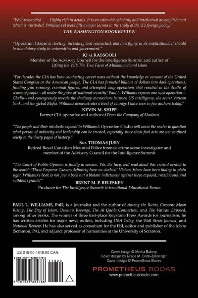 Discover the shocking alliance involving the CIA, the Mafia, and the Vatican that emerged after WWII to prevent a Communist takeover in Europe. In Operation Gladio, investigative journalist Paul L. Williams uncovers a disturbing web of "stay-behind" armies formed across Europe, consisting of thousands of operatives. Funded by smuggled Nazi morphine and counterfeit British banknotes, these secret units not only targeted potential Communist invaders but also fueled terror attacks to suppress left-wing movements in South America and NATO nations. Williams reveals how this clandestine operation sparked government overthrows, widespread genocide, death squads, grand-scale financial scandals, and the rise of the mujahideen. He even connects the roots of Operation Gladio to the ascent of Jorge Mario Bergoglio—better known as Pope Francis I—who has ties to Operation Condor, Gladio’s offshoot in Argentina. Packed with explosive revelations, Operation Gladio exposes a hidden history of global intrigue, violence, and deception that mainstream media often ignores. "The people and their misdeeds exposed in Paul Williams's Operation Gladio will cause the reader to question what person of authority and leadership can be trusted, especially since these foul acts are not confined solely to the dusty pages of history." ―Sgt. Thomas Juby, retired Royal Canadian Mounted Police Forensic Crime Scene Investigator and member of the Advisory Council for the Intelligence Summit