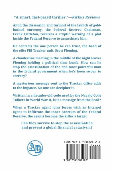 2022 Kirkus Review Editor's Choice--"Great Indie Books Worth Discovering" "The novel offers intriguing surprises. A smart, fast-paced thriller."--Kirkus Reviews "Whoever controls the flow of the money supply, irrespective of whether it is fiat or gold currency, is the one to fear."Amid the dissension and turmoil of the launch of gold-backed currency, the Federal Reserve Chairman, Frank Littleton, receives a cryptic warning of a plot inside the Federal Reserve to assassinate him.He contacts the one person he can trust, the head of the elite FBI Tracker unit, Scott Fleming.A clandestine meeting in the middle of the night leaves Fleming holding a political time bomb. How can he stop the assassination of the 2nd most powerful man in the federal government when he's been sworn to secrecy?A mysterious message sent to the Tracker office adds to the impasse. No one can decipher it.Written in a decades-old code used by the Navajo Code Talkers in World War II, is it a message from the dead?When a Tracker agent joins forces with an Interpol agent to infiltrate the inner sanctum of the Federal Reserve, the agents become the killer's target. Can they survive to stop the assassination and prevent a global financial cataclysm?