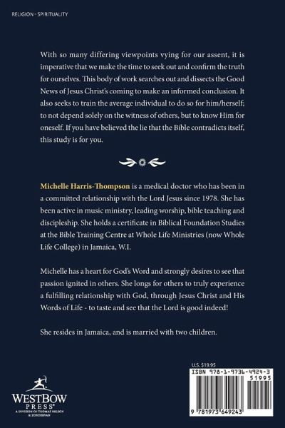 With so many differing viewpoints vying for our assent, it is imperative that we make the time to seek out and confirm the truth for ourselves. This body of work searches out and dissects the Good News of Jesus Christ's coming to make an informed conclusion. It also seeks to train the average individual to do so for him/herself; to not depend solely on the witness of others, but to know Him for oneself. If you have believed the lie that the Bible contradicts itself, this study is for you.