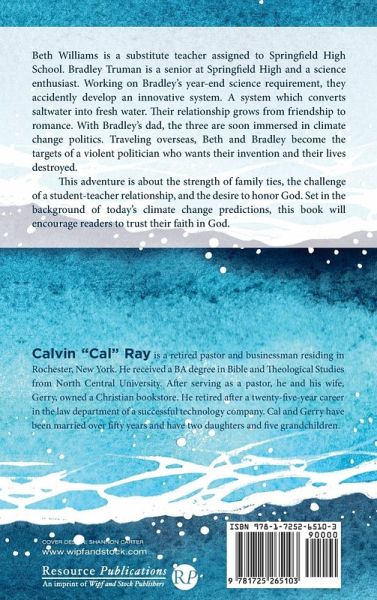 Beth Williams is a substitute teacher assigned to Springfield High School. Bradley Truman is a senior at Springfield High and a science enthusiast. Working on Bradley's year-end science requirement, they accidently develop an innovative system. A system which converts saltwater into fresh water. Their relationship grows from friendship to romance. With Bradley's dad, the three are soon immersed in climate change politics. Traveling overseas, Beth and Bradley become the targets of a violent politician who wants their invention and their lives destroyed. This adventure is about the strength of family ties, the challenge of a student-teacher relationship, and the desire to honor God. Set in the background of today's climate change predictions, this book will encourage readers to trust their faith in God.