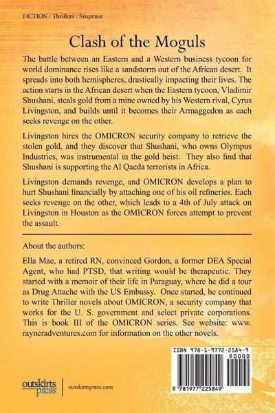 The battle between an Eastern and a Western business tycoon for world dominance rises like a sandstorm out of the African desert. It spreads into both hemispheres, drastically impacting their lives. The action starts in the African desert when the Eastern tycoon, Vladimir Shushani, steals gold from a mine owned by his Western rival, Cyrus Livingston, and builds until it becomes their Armaggedon as each seeks revenge on the other. Livingston hires the OMICRON security company to retrieve the stolen gold, and they discover that Shushani, who owns Olympus Industries, was instrumental in the gold heist. They also find that Shushani is supporting the Al Qaeda terrorists in Africa. Livingston demands revenge, and OMICRON develops a plan to hurt Shushani financially by attaching one of his oil refineries. Each seeks revenge on the other, which leads to a 4th of July attack on Livingston in Houston as the OMICRON forces attempt to prevent the assault.