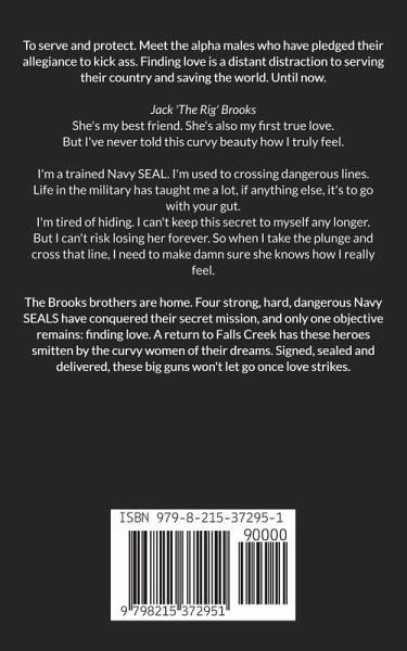 To serve and protect. Meet the alpha males who have pledged their allegiance to kick ass. Finding love is a distant distraction to serving their country and saving the world. Until now. Jack 'The Rig' Brooks She's my best friend. She's also my first true love. But I've never told this curvy beauty how I truly feel. I'm a trained Navy SEAL. I'm used to crossing dangerous lines. Life in the military has taught me a lot, if anything else, it's to go with your gut. I'm tired of hiding. I can't keep this secret to myself any longer. But I can't risk losing her forever. So when I take the plunge and cross that line, I need to make damn sure she knows how I really feel. The Brooks brothers are home. Four strong, hard, dangerous Navy SEALS have conquered their secret mission, and only one objective remains: finding love. A return to Falls Creek has these heroes smitten by the curvy women of their dreams. Signed, sealed and delivered, these big guns won't let go once love strikes. Each book in the series is a complete, standalone story and can be read in any order. The stories are linked, bringing your favorite characters together. This is a sweet and steamy military romance, BBW One Hour Short read. If you like INSTALOVE novellas filled with strong curvy girls, a guaranteed HEA & the sexiest book boyfriends, this series is for you