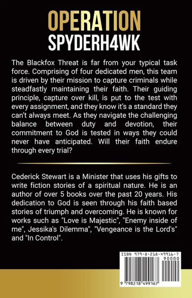 Cederick Stewart is a Minister that uses his gifts to write fiction stories of a spiritual nature. He is an author of over 5 books over the past 20 years. His dedication to God is seen through his faith based stories of triumph and overcoming.