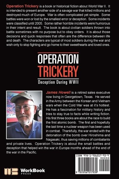 Operation Trickery is a book or historical fiction about World War II. It is intended to present another side of a savage war that killed millions and destroyed much of Europe. War is often complicated yet simple. Some battles were won or lost by the smallest error or deception. Some incidents were classified until 2005. Some rather horrible incidents were humorous in their intent and result. The book is about civilian soldiers thrown into battle sometimes with no purpose but to obey orders. It is about those decisions and quick responses that often are the difference between life and death. The characters are typical of most soldiers during the war and wish only to stop fighting and go home to their sweethearts and loved ones.