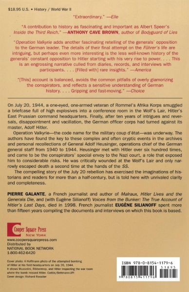 Operation Valkyrie was the code name given to the plot to assassinate Hitler. Galante's book is based in large part on achived materials and extensive interviews with Adolf Heusinger, one of the generals who played a key role in the plot.