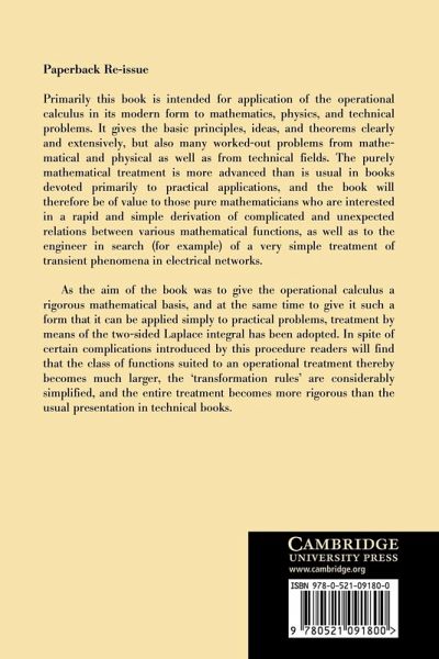 Primarily this book is intended for application of the operational calculus to mathematics, physics, and technical problems.