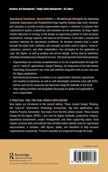 Operational Excellence, Second Edition - Breakthrough Strategies for Improving Customer Experience and Productivity brings together leading-edge tools, methods, and concepts to provide process improvement experts a reference to improve their organization's quality, productivity, and customer service operations. Its major topics include alignment of strategy to the design of supporting systems to meet customer expectations, manage capacity, and improve performance. It provides a concise and practical reference for operational excellence. Its fourteen chapters lead a reader through the latest tools, methods, and concepts currently used to capture "voice of" customers, partners, and other stakeholders, new strategies for the application of Lean, Six Sigma, as well as product and service design across diverse industries, including manufacturing to financial services. This book operates from three premises: