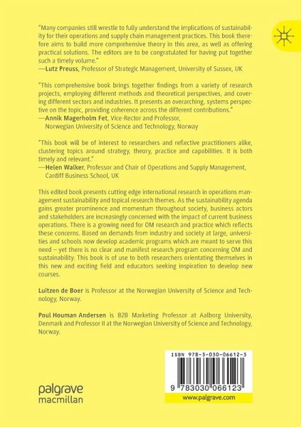 This edited book presents cutting edge international research in operations management sustainability and topical research themes. As the sustainability agenda gains greater prominence and momentum throughout society, business actors and stakeholders are increasingly concerned with the impact of current business operations. There is a growing need for OM research and practice which reflects these concerns. Based on demands from industry and society at large, universities and schools now develop academic programs which are meant to serve this need - yet there is no clear and manifest research…mehr