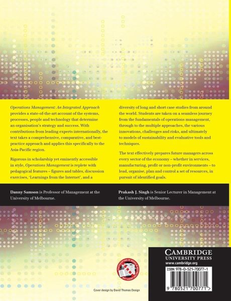 Operations Management: An Integrated Approach provides an account of the systems, processes, people and technology that determine an organisation's strategy and success. With contributions from leading experts internationally, the text takes a comprehensive, comparative, and best-practice approach and applies this specifically to the Asia-Pacific region. Rigorous in scholarship yet eminently accessible in style, Operations Management is replete with pedagogical features - figures and tables, discussion exercises, 'Learnings from the Internet', and a diversity of long and short case studies from around the world. Students are taken on a seamless journey from the fundamentals of operations management, through to the multiple approaches, the various innovations, challenges and risks, and ultimately to models of sustainability and evaluative tools and techniques. The text effectively prepares future managers across every sector of the economy to lead, organise, plan and control a set of resources, in pursuit of identified goals. The book will be supported by an extensive companion website featuring PowerPoint slides for each chapter, sample answers, teaching notes and figures/images for presentations.