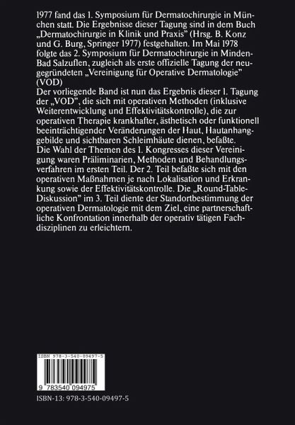 Operative Eingriffe am Hautorgan nehmen einen breiten Raum in nerhalb der dermatotherapeutischen BehandlungsmaBnahmen ein. Teilweise ersetzen sie weniger suffiziente Behandlungstechniken, wie die Rontgentherapie maligner und benigner Tumoren, die me dikamentose Behandlung der Hyperhidrosis axillaris, oder sie er ganzen zwar wirksame, aber vielfach nicht bis zur vollstandigen Remission ftihrende dermatotherapeutische MaBnahmen, z.B. operative Korrektur von Verbrennungs- und Verletzungsnarben, narbigen Zustanden nach Lupus vulgaris und Acne conglobata und operative Beseitigung von insuffizienten oberfIachlichen Venen an Stelle der weniger wirksamen Sklerosierungsbehandlung. Vielerorts wurden operative Methoden entwickelt und ver bessert urn den mannigfaltigen Anforderungen der Dermatothera pie zu en tsprechen. Beispielhaft seien angeftihrt: operative Behand lung der sogenannten ausgebrannten Akne (Friedrich), operative Behandlung von Haut- und Schleirnhautveranderungen des Prapu tium und der Glans penis (Happle), operative Behandlung der Hyperhidrosis axillaris (Salfeld), Verbesserung der Behandlungs moglichkeiten von Tatowierungen (Haneke). Namhafte Vertreter der einzelnen operativ tiitigen Fachdiszi plinen dienten mit ihren Beitragen der Vertiefung des Themas "SpezielIe Operative Dermatologie". Insgesamt ist so ein abgerundetes Bild tiber die operativen In tentionen der Dermatologie und deren benachbarten Fachdiszipli nen am Hautorgan entstanden. Das vorliegende Werk kann somit als geschlossenes Ganzes angesehen werden.