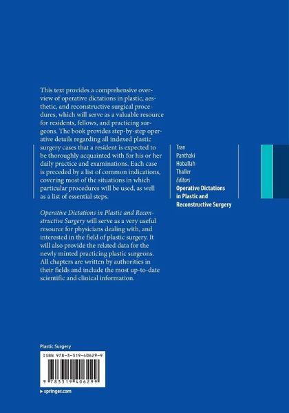 This text provides a comprehensive overview of operative dictations in plastic, aesthetic, and reconstructive surgical procedures, which will serve as a valuable resource for residents, fellows, and practicing surgeons. The book provides step-by-step operative details regarding all indexed plastic surgery cases that a resident is expected to be thoroughly acquainted with for his or her daily practice and examinations. Each case is preceded by a list of common indications, covering most of the situations in which particular procedures will be used, as well as a list of essential steps. Operative Dictations in Plastic and Reconstructive Surgery will serve as a very useful resource for physicians dealing with, and interested in the field of plastic surgery. It will also provide the related data for the newly minted practicing plastic surgeons. All chapters are written by authorities in their fields and include the most up-to-date scientificand clinical information.