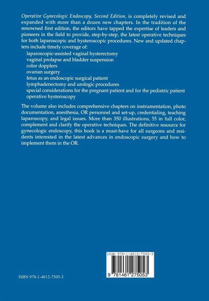Operative Gynecologic Endoscopy, Second Edition is completely revised and expanded with 17 new chapters that provide, step-by-step, the latest operative techniques for both laparoscopic AND hysteroscopic procedures. New and updated chapters include: laparoscopic assisted vaginal hysterectomy; vaginal prolapse and bladder suspension; ectopic pregnancy; tubal reconstructive surgery; assisted reproductive technologies; lymphadenectomy and urologic procedures; operative hysteroscopy. In addition, this volume includes comprehensive chapters on instrumentation, photo documentation, anesthesia, operating room personnel, credentialing, and legal issues. More than 350 superb illustrations - with many in full color - complement and clarify the operative techniques. For every surgeon and resident performing gynecologic procedures, this is the definitive, most up-to-date text on gynecologic endoscopy.