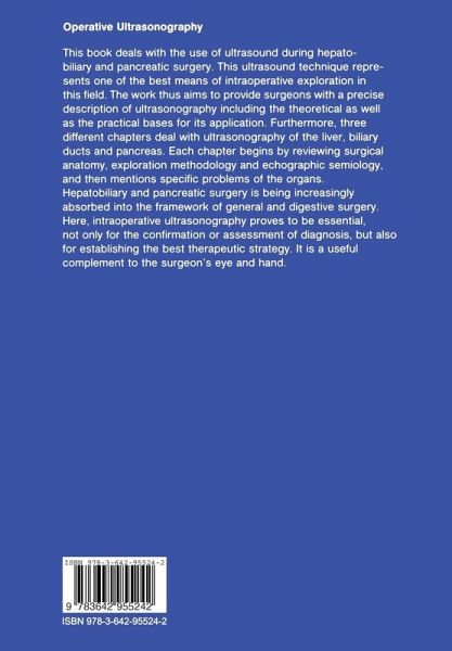 Surgery an essentially manual exercise in its early days, has progressively grown richer in complementary techniques helping the surgeon to perfect his movements and increase efficiency. This is particularly the case with digestive surgery, which has been thoroughly transformed by radiology, endoscopy and extemporaneous examinations effected during surgical intervention. Such methods make it possible for surgeons to develop subtle nuances in operative techniques and to specify indi cations more and more precisely. Ultrasonography must now be included among such techniques. It supplements them and can sometimes even replace them. For these reasons, this work devoted to the use of ultrasound by the surgeon during surgical intervention is of great interest. Two general conditions had to be met before ultrasonography could be em ployed in abdominal surgery: the method and apparatus had to be adapted to its surgical utilization, and the surgeon had to adapt to a nonsurgical technique.The first condition has been fulfilled for all purposes. Intraoperative sonograms can be generated at a very high rate and are proving to be more and more useful. The miniaturization of probes permits their application almost everywhere with opti mal results. Of course, the costs are still high, but one can expect them to decrease.
