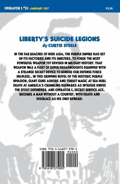 In the far reaches of High Asia, the Purple Empire had set up its factories and its smelters, to forge the most powerful weapon yet devised in military history. That weapon was a fleet of super-dreadnoughts equipped with a strange secret device to render our Defense Force helpless... In this gripping novel of the historic Purple Invasion, giant guns ashore and turret magic at sea hurl death at America's crumbling bulwarks as intrigue knifes the stout defenders. And Operator 5, Secret Service ace, becomes a man without a country, with death and disgrace as his only reward.