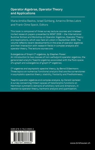 This book is composed of three survey lecture courses and nineteen invited research papers presented to WOAT 2006 - the International Summer School and Workshop on Operator Algebras, Operator Theory and Applications, which was held at Lisbon in September 2006. The volume reflects recent developments in the area of operator algebras and their interaction with research fields in complex analysis and operator theory.
