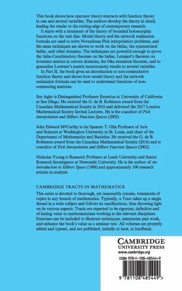A detailed monograph exploring how operator theory interacts with function theory in one and several variables.