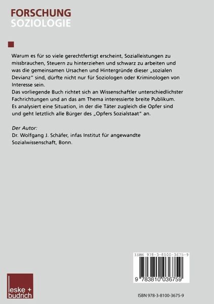 Warum es für so viele gerechtfertigt erscheint, Sozialleistungen zu missbrauchen, Steuern zu hinterziehen und schwarz zu arbeiten und was die gemeinsamen Ursachen und Hintergründe dieser ,sozialen Devianz' sind, dürfte nicht nur für Soziologen oder Kriminologen von Interesse sein. Das vorliegende Buch richtet sich an Wissenschaftler unterschiedlichster Fachrichtungen und an das am Thema interessierte breite Publikum. Es analysiert eine Situation, in der die Täter zugleich die Opfer sind und geht letztlich alle Bürger des ,Opfers Sozialstaat' an.