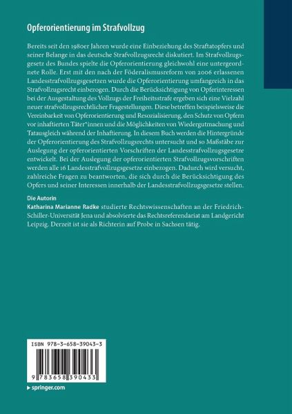 Bereits seit den 1980er Jahren wurde eine Einbeziehung des Straftatopfers und seiner Belange in das deutsche Strafvollzugsrecht diskutiert. Im Strafvollzugsgesetz des Bundes spielte die Opferorientierung gleichwohl eine untergeordnete Rolle. Erst mit den nach der Föderalismusreform von 2006 erlassenen Landesstrafvollzugsgesetzen wurde die Opferorientierung umfangreich in das Strafvollzugsrecht einbezogen. Durch die Berücksichtigung von Opferinteressen bei der Ausgestaltung des Vollzugs der Freiheitsstrafe ergeben sich eine Vielzahl neuer strafvollzugsrechtlicher Fragestellungen. Diese betreffen beispielsweise die Vereinbarkeit von Opferorientierung und Resozialisierung, den Schutz von Opfern vor inhaftierten Täter_innen und die Möglichkeiten von Wiedergutmachung und Tatausgleich während der Inhaftierung. In diesem Buch werden die Hintergründe der Opferorientierung des Strafvollzugsrechts untersucht und so Maßstäbe zur Auslegung der opferorientierten Vorschriften der Landesstrafvollzugsgesetze entwickelt. Bei der Auslegung der opferorientierten Strafvollzugsvorschriften werden alle 16 Landesstrafvollzugsgesetze einbezogen. Dadurch wird versucht, zahlreiche Fragen zu beantworten, die sich durch die Berücksichtigung des Opfers und seiner Interessen innerhalb der Landesstrafvollzugsgesetze stellen.