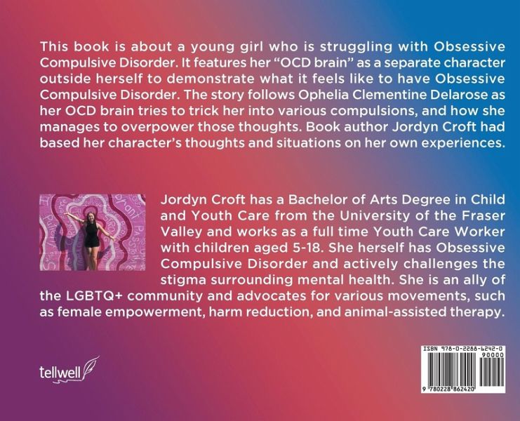 This book is about a young girl who is struggling with Obsessive Compulsive Disorder. It features her "OCD brain" as a separate character outside herself to demonstrate what it feels like to have Obsessive Compulsive Disorder. The story follows Ophelia Clementine Delarose as her OCD brain tries to trick her into various compulsions, and how she manages to overpower those thoughts. Book author Jordyn Croft had based her character's thoughts and situations on her own experiences.