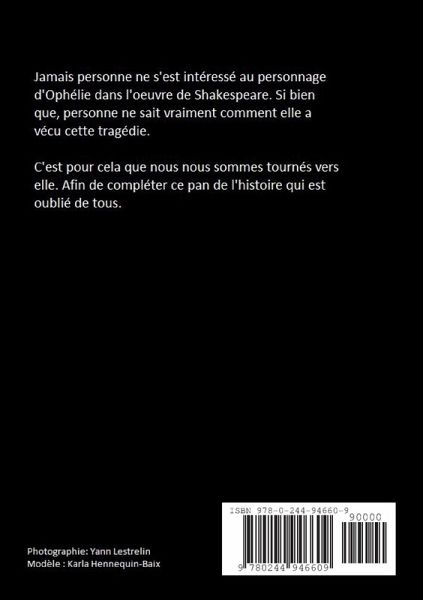 Ophélie est une pièce contemporaine, créée par de jeunes étudiants et montée par eux-mêmes afin de commencer une carrière dans le milieu théâtral. Ophélie prend place dans la tragédie d'Hamlet de William Shakespeare. En effet, dans cette pièce nous revivrons Hamlet mais du point de vue du personnage d'Ophélie qui a été bien trop oublié par la littérature. Cette pièce se base donc sur ce personnage et sur ce qu'elle a vécu durant cette pièce de théâtre de William Shakespeare.
