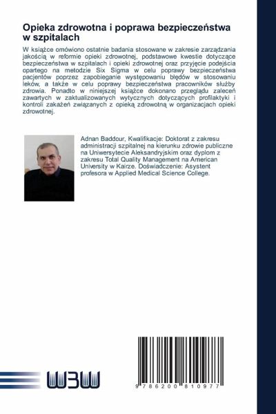 W ksi¿¿ce omówiono ostatnie badania stosowane w zakresie zarz¿dzania jako¿ci¿ w reformie opieki zdrowotnej, podstawowe kwestie dotycz¿ce bezpiecze¿stwa w szpitalach i opieki zdrowotnej oraz przyj¿cie podej¿cia opartego na metodzie Six Sigma w celu poprawy bezpiecze¿stwa pacjentów poprzez zapobieganie wyst¿powaniu b¿¿dów w stosowaniu leków, a tak¿e w celu poprawy bezpiecze¿stwa pracowników s¿u¿by zdrowia. Ponadto w niniejszej ksi¿¿ce dokonano przegl¿du zalece¿ zawartych w zaktualizowanych wytycznych dotycz¿cych profilaktyki i kontroli zakäe¿ zwi¿zanych z opiek¿ zdrowotn¿ w organizacjach opieki zdrowotnej.