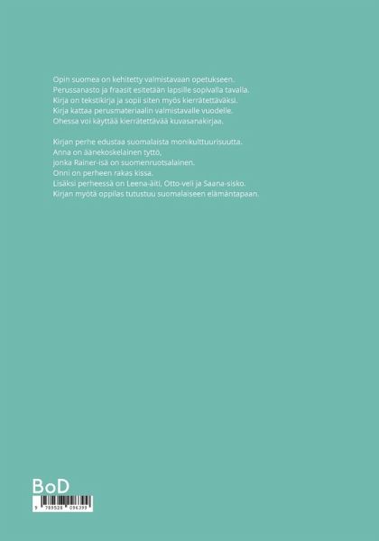 Opin suomea on kehitetty valmistavaan opetukseen. Perussanasto ja fraasit esitetään lapsille sopivalla tavalla. Kirja on tekstikirja ja sopii siten myös kierrätettäväksi. Kirja kattaa perusmateriaalin valmistavalle vuodelle. Ohessa voi käyttää kierrätettävää kuvasanakirjaa. Kirjan perhe edustaa suomalaista monikulttuurisuutta. Anna on äänekoskelainen tyttö, jonka Rainer-isä on suomenruotsalainen. Onni on perheen rakas kissa. Lisäksi perheessä on Leena-äiti, Otto-veli ja Saana-sisko. Kirjan myötä oppilas tutustuu suomalaiseen elämäntapaan.