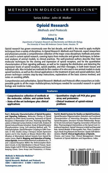 Opioid research is one of the multidisciplinary research areas that involve advanced techniques ranging from molecular genetics to neuropharmacology, and from behavioral neuroscience to clinical medicine. In current opioid research, it has become increasingly important to use multiple approaches at molecular, cellular, and system levels for investigations on a specific opio- related target system. That often requires understanding and applying cro- field techniques and methods for the success of one's research projects. Through its broad spectrum of coverage, Opioid Research: Methods and Protocols provides a comprehensive collection of major laboratory methods and protocols in current opioid research, covering topics from molecular and genetic techniques to behavioral analyses of animal models, and then to clinical practice. It will serve as a convenient reference book from which those involved in opioid research will learn or perfect the necessary cross-field techniques. The detailed methods and protocols described in Opioid Research: Methods and Protocols have each been successfully applied in current opioid research. Part I provides molecular techniques for the cloning and expression of opioid receptors, and for the quantitative characterization of their signaling pathways. Part II includes primary techniques for mapping the distributions and detecting the expression levels of opioid receptors, opioid peptides, and their messages in brain tissues and in individual cells. Part III deals with methods for creating in vitro receptor models and in vivo animal models to study opioid functions. Part IV describes practical applications of opioids in clinical medicine for the treatment of pain and opioid addiction.