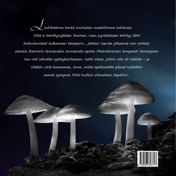 Louhikäärme heräsi muinaisen maaäitimme kohdussa. Siitä ei kehittynytkään ihminen, vaan pyrstökkään kehitys lähti hullunkurisesti kulkemaan takaperin... jättäen lopulta jälkeensä vain tuhkat, etenkin Darwinin teorianakin tunnetusta opista. Määrätietoisen lempeästi ilmestyksen imu veti sohvalta syöksykierteeseen, kohti aikaa, jolloin valo oli sisäistä... ja siitäkin vielä kauemmas, sinne, mistä epäilemättä pienet noidatkin saavat syntynsä. Mitä tuolloin oikeastaan tapahtui... Toisin ilmaistuna, absurdi tositarina peilailee omavalintaiselle kodittomuudelle heittäytyneen villin kulkuritytön liikehdintää ja tarinointia mystisissäkin maisemissa.