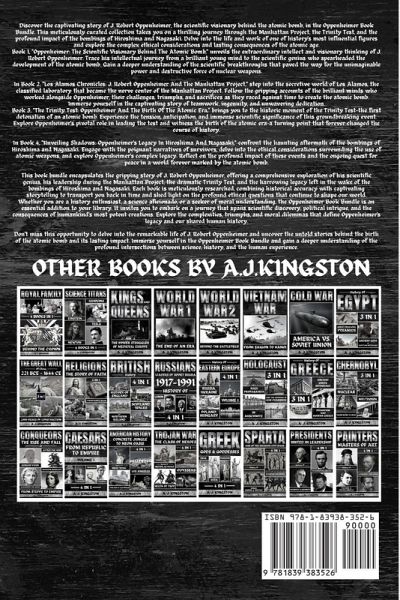 Discover the captivating story of J. Robert Oppenheimer, the scientific visionary behind the atomic bomb, in the Oppenheimer Book Bundle. This meticulously curated collection takes you on a thrilling journey through the Manhattan Project, the Trinity Test, and the profound impact of the bombings of Hiroshima and Nagasaki. Delve into the life and work of one of history's most influential figures and explore the complex ethical considerations and lasting consequences of the atomic age. Book 1, "Oppenheimer: The Scientific Visionary Behind The Atomic Bomb," unveils the extraordinary intellect and visionary thinking of J. Robert Oppenheimer. Trace his intellectual journey from a brilliant young mind to the scientific genius who spearheaded the development of the atomic bomb. Gain a deeper understanding of the scientific breakthroughs that paved the way for the unimaginable power and destructive force of nuclear weapons. In Book 2, "Los Alamos Chronicles: J. Robert Oppenheimer And The Manhattan Project," step into the secretive world of Los Alamos, the classified laboratory that became the nerve center of the Manhattan Project. Follow the gripping accounts of the brilliant minds who worked alongside Oppenheimer, their challenges, triumphs, and sacrifices as they raced against time to create the atomic bomb. Immerse yourself in the captivating story of teamwork, ingenuity, and unwavering dedication. Book 3, "The Trinity Test: Oppenheimer And The Birth Of The Atomic Era," brings you to the historic moment of the Trinity Test-the first detonation of an atomic bomb. Experience the tension, anticipation, and immense scientific significance of this groundbreaking event. Explore Oppenheimer's pivotal role in leading the test and witness the birth of the atomic era-a turning point that forever changed the course of history. In Book 4, "Unveiling Shadows: Oppenheimer's Legacy In Hiroshima And Nagasaki," confront the haunting aftermath of the bombings of Hiroshima and Nagasaki. Engage with the poignant narratives of survivors, delve into the ethical considerations surrounding the use of atomic weapons, and explore Oppenheimer's complex legacy. Reflect on the profound impact of these events and the ongoing quest for peace in a world forever marked by the atomic bomb. This book bundle encapsulates the gripping story of J. Robert Oppenheimer, offering a comprehensive exploration of his scientific genius, his leadership during the Manhattan Project, the dramatic Trinity Test, and the harrowing legacy left in the wake of the bombings of Hiroshima and Nagasaki. Each book is meticulously researched, combining historical accuracy with captivating storytelling to transport you back in time and shed light on the profound ethical questions that continue to shape our world. Whether you are a history enthusiast, a science aficionado, or a seeker of moral understanding, the Oppenheimer Book Bundle is an essential addition to your library. It invites you to embark on a journey that spans scientific discovery, political intrigue, and the consequences of humankind's most potent creations. Explore the complexities, triumphs, and moral dilemmas that define Oppenheimer's legacy and our shared human history. Don't miss this opportunity to delve into the remarkable life of J. Robert Oppenheimer and uncover the untold stories behind the birth of the atomic bomb and its lasting impact. Immerse yourself in the Oppenheimer Book Bundle and gain a deeper understanding of the profound intersections between science, history, and the human experience.