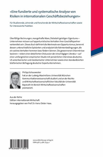Überfällige Rechnungen, mangelhafte Ware, Diebstahl geistigen Eigentums - Unternehmer müssen auf opportunistisches Verhalten ihrer Geschäftspartner vorbereitet sein. Dieses Buch definiert die Merkmale von Opportunismus, benennt dessen unterschiedliche Spielarten und analysiert die Rahmenbedingungen, die ein solches Verhalten hemmen bzw. fördern können. Die gewonnenen Erkenntnisse basieren - neben einer detaillierten Diskussion der einschlägigen Literatur - auf einer umfangreichen empirischen Studie mit persönlichen Interviews deutscher, US-amerikanischer und mexikanischer Unternehmer sowie einer standardisierten telefonischen Befragung deutscher Exportunternehmen.