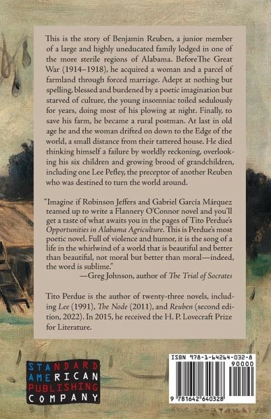 This is the story of Benjamin Reuben, a junior member of a large and highly uneducated family lodged in one of the more sterile regions of Alabama. Before The Great War (1914-1918), he acquired a woman and a parcel of farmland through forced marriage. Adept at nothing but spelling, blessed and burdened by a poetic imagination but starved of culture, the young insomniac toiled sedulously for years, doing most of his plowing at night. Finally, to save his farm, he became a rural postman. At last in old age he and the woman drifted on down to the Edge of the world, a small distance from their tattered house. He died thinking himself a failure by worldly reckoning, overlooking his six children and growing brood of grandchildren, including one Lee Pefley, the preceptor of another Reuben who was destined to turn the world around.