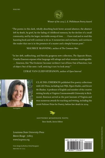 Claudia Emerson has published five poetry collections with LSU Press, including Late Wife, Figure Studies, and Secure the Shadow. A professor of English and member of the creative writing faculty at Virginia Commonwealth University in Richmond, Emerson has served as the poet laureate of Virginia and won numerous awards for teaching and writing, including the 2006 Pulitzer Prize for Poetry.