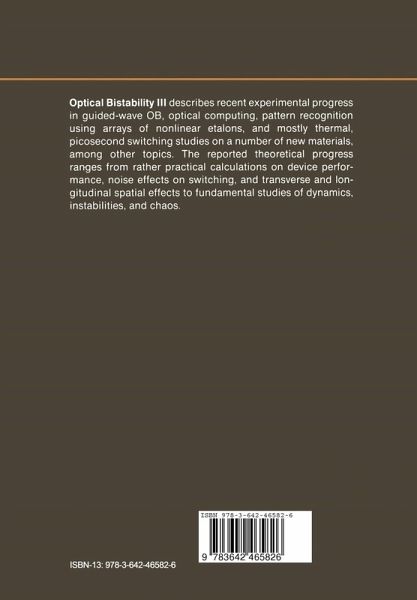 This is a collection of papers presented at the Topical Meeting on Optical BistabiJity (OB3) held December 2-4,1985 in Tucson, Arizona. The increase in attendance to almost 200 shows that interest continues to grow in the sub ject of optical bistability (OB) and its wider implications both in application to "optical digital computing" and to basic physics, notably instabilities and spatial effects. The maturing of the field is evidenced by the fact that the number of experimental papers has caught up with the number of theoretical ones. These trends were already apparent in OB2 and the 1984 Royal Society Meeting on Optical Bistabilty, Dynamical Nonlinearity and Photonic Logic. Progress in experiment.al topics included guided-wave OB, mostly ther mal, picol'econd switching, studies on quite a number of new materials, op tical computing, and pattern recognition using arrays of nonlinear etalons. Theoretical progress ranged from rather practical calculations on device per formance, noise effects on switching, and transverse and longitudinal spatial effects to fundamental studies of dynamics, instabilities, and chaos. The Conference also included both theoretical ideas on optical computer archit.ecture and intrinsic OB circuit elements such as as full adder as well as t.he first demonstration of an intrinsic optical circuit in the form of a cas cadable loop with bufferd st.ores. A first demostration of a simple pattern recognition algorithm using 2-D arrays of spots on a ZnSe int.erference filter was reported.
