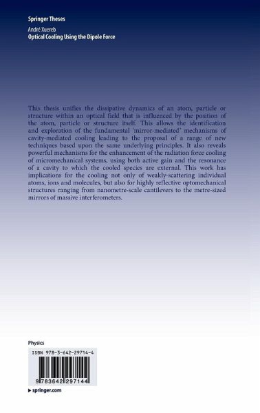 This thesis unifies the dissipative dynamics of an atom, particle or structure within an optical field that is influenced by the position of the atom, particle or structure itself. This allows the identification and exploration of the fundamental 'mirror-mediated' mechanisms of cavity-mediated cooling leading to the proposal of a range of new techniques based upon the same underlying principles. It also reveals powerful mechanisms for the enhancement of the radiation force cooling of micromechanical systems, using both active gain and the resonance of a cavity to which the cooled species are…mehr