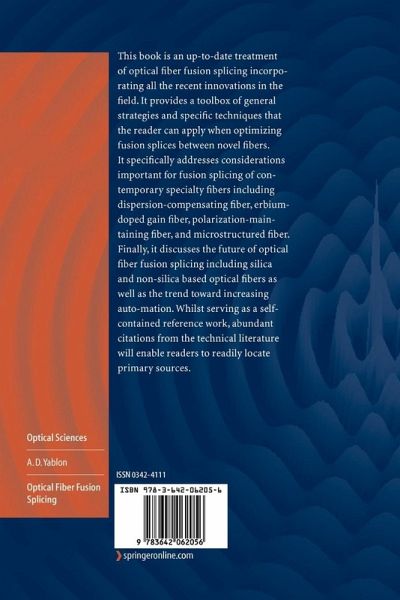 This book is an up-to-date treatment of optical fiber fusion splicing incorporating all the recent innovations in the field. It provides a toolbox of general strategies and specific techniques that the reader can apply when optimizing fusion splices between novel fibers. It specifically addresses considerations important for fusion splicing of contemporary specialty fibers including dispersion compensating fiber, erbium-doped gain fiber, polarization maintaining fiber, and microstructured fiber. Finally, it discusses the future of optical fiber fusion splicing including silica and non-silica based optical fibers as well as the trend toward increasing automation. Whilst serving as a self-contained reference work, abundant citations from the technical literature will enable readers to readily locate primary sources.