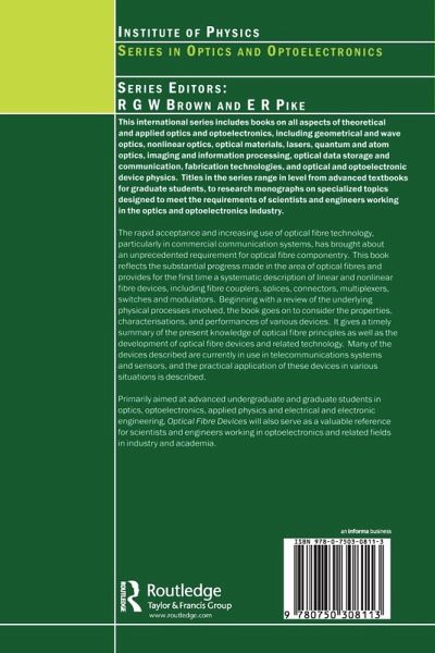 This book reflects the substantial progress made in the area of optical fibers and provides for the first time a systematic description of linear and non-linear fiber devices, including fiber couplers, splices, connectors, multiplexers, switches, and modulators. Primarily aimed at advanced undergraduate and graduate students in optics, optoelectronics, applied physics, and electrical and electronic engineering, this book serves as a valuable reference for scientists and engineers working in optoelectronics and related fields in industry and academic. Topics include coupling, devices based on coupling effect with non-polarized light, and devices using polarized light.