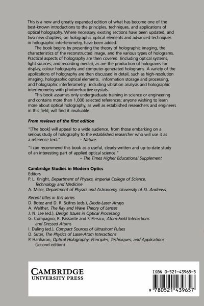 This is a new and greatly expanded edition of what has become one of the best-known introductions to the principles, techniques, and applications of optical holography.
