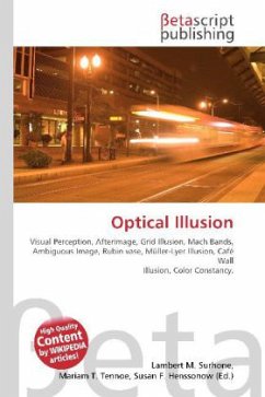 Please note that the content of this book primarily consists of articles available from Wikipedia or other free sources online. An optical illusion is characterized by visually perceived images that differ from objective reality. The information gathered by the eye is processed in the brain to give a percept that does not tally with a physical measurement of the stimulus source. There are three main types: literal optical illusions that create images that are different from the objects that make them, physiological ones that are the effects on the eyes and brain of excessive stimulation of a specific type, and cognitive illusions where the eye and brain make unconscious inferences.