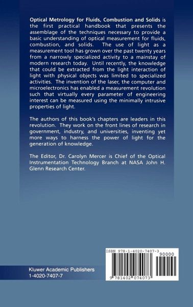 Optical Metrology for Fluids, Combustion and Solids is the first practical handbook that presents the assemblage of the techniques necessary to provide a basic understanding of optical measurement for fluids, combustion, and solids. The use of light as a measurement tool has grown over the past twenty years from a narrowly specialized activity to a mainstay of modern research today. Until recently, the knowledge that could be extracted from the light interaction of light with physical objects was limited to specialized activities. The invention of the laser, the computer and microelectronics has enabled a measurement revolution such that virtually every parameter of engineering interest can be measured using the minimally intrusive properties of light.