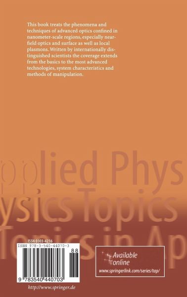 This book treats the phenomena and techniques of advanced optics confined in nanometer-scale regions, especially near-field optics and surface as well as local plasmons. Written by internationally distinguished scientists the coverage extends from the basics to the most advanced technologies, system characteristics and methods of manipulation.