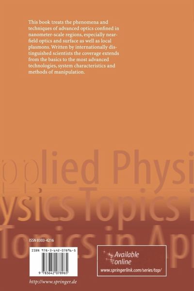 This book treats the phenomena and techniques of advanced optics confined in nanometer-scale regions, especially near-field optics and surface as well as local plasmons. Written by internationally distinguished scientists the coverage extends from the basics to the most advanced technologies, system characteristics and methods of manipulation.