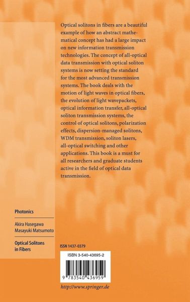 Optical solitons in fibers are a beautiful example of how an abstract mathematical concept has had an impact on new information transmission technologies. The concept of all-optical data transmission with optical soliton systems is now setting the standard for the most advanced transmission systems. The book deals with the motion of light waves in optical fibers, the evolution of light wavepackets, optical information transfer, all-optical soliton transmission systems, the control of optical solitons, polarization effects, dispersion-managed solitons, WDM transmission, soliton lasers, all-optical switching and other applications. This book is a must for all researchers and graduate students active in the field of optical data transmission.