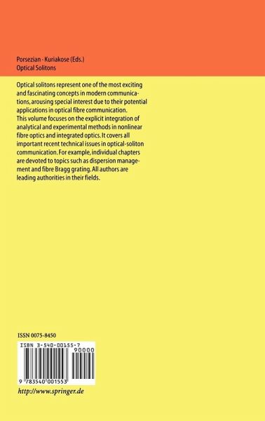 Optical Solitons represent one of the most exciting and fascinating concepts in modern communications, arousing special interest due to their potential applications in optical fibre communication. This volume focuses on the explicit integration of analytical and experimental methods in nonlinear fibre optics and integrated optics. It covers all important recent technical issues in optical-soliton communication. For example, individual chapters are devoted to topics such as dispersion management and fibre Bragg grating. All authors are leading authorities in their fields.